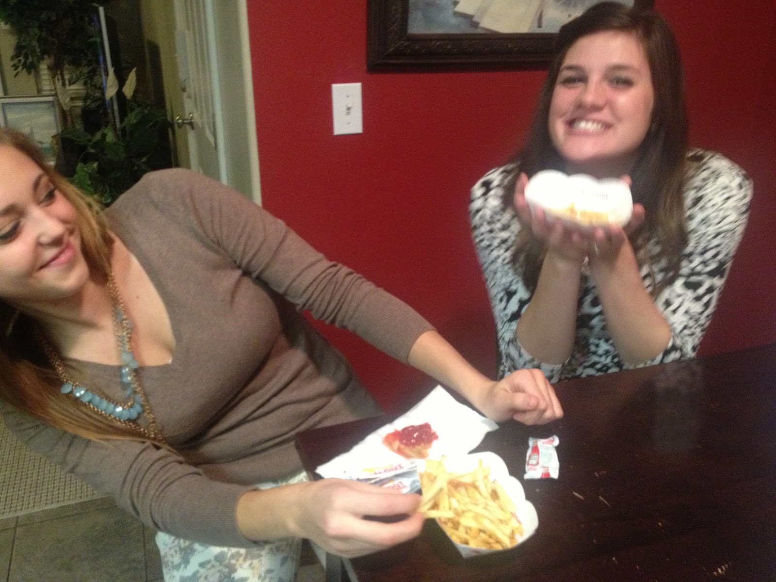 We got our burgers and fries to go and headed to Reed and Conner's place!